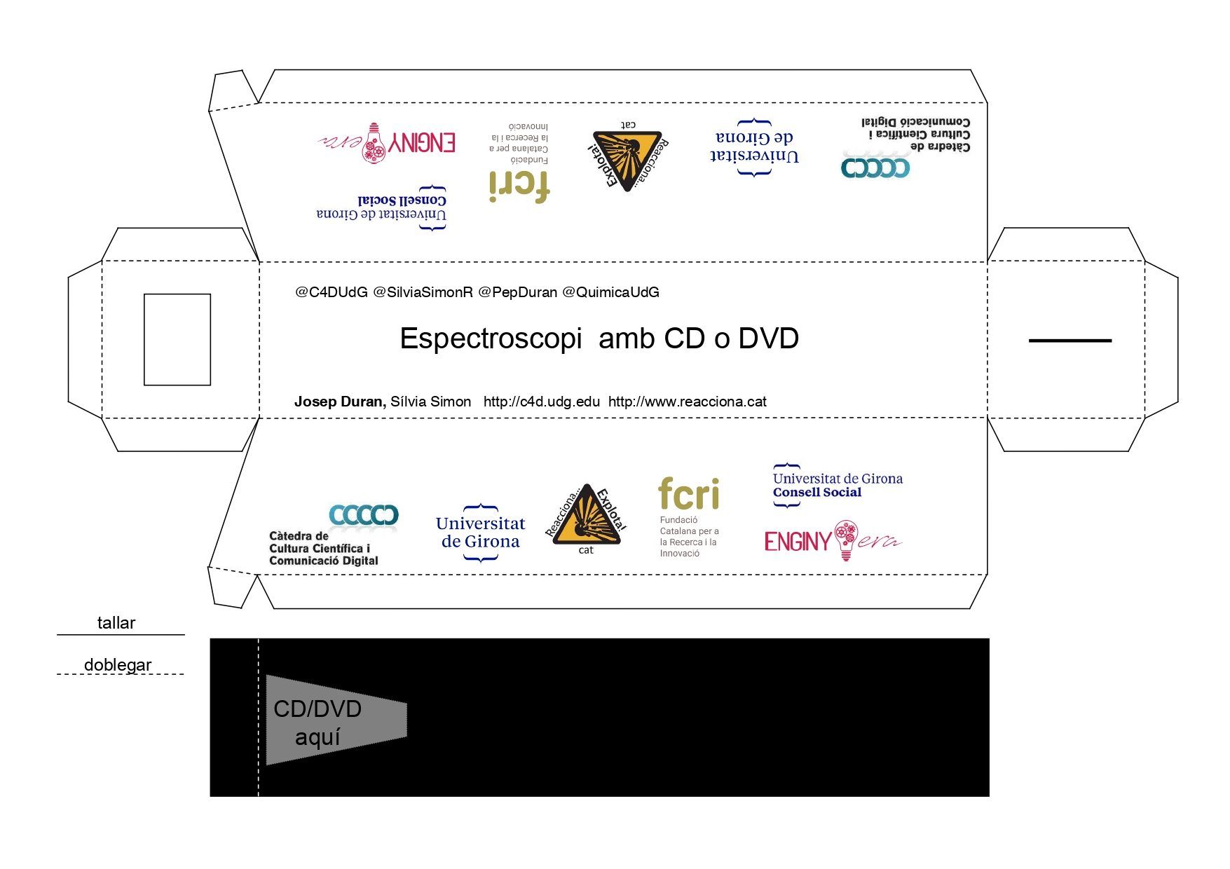¡Esperamos que disfrutéis mucho del programa y os animamos a que confeccionéis vuestros espectroscopios caseros en casa o en la escuela! A continuación, encontraréis la plantilla en imagen y jpg para que se la podáis imprimir: