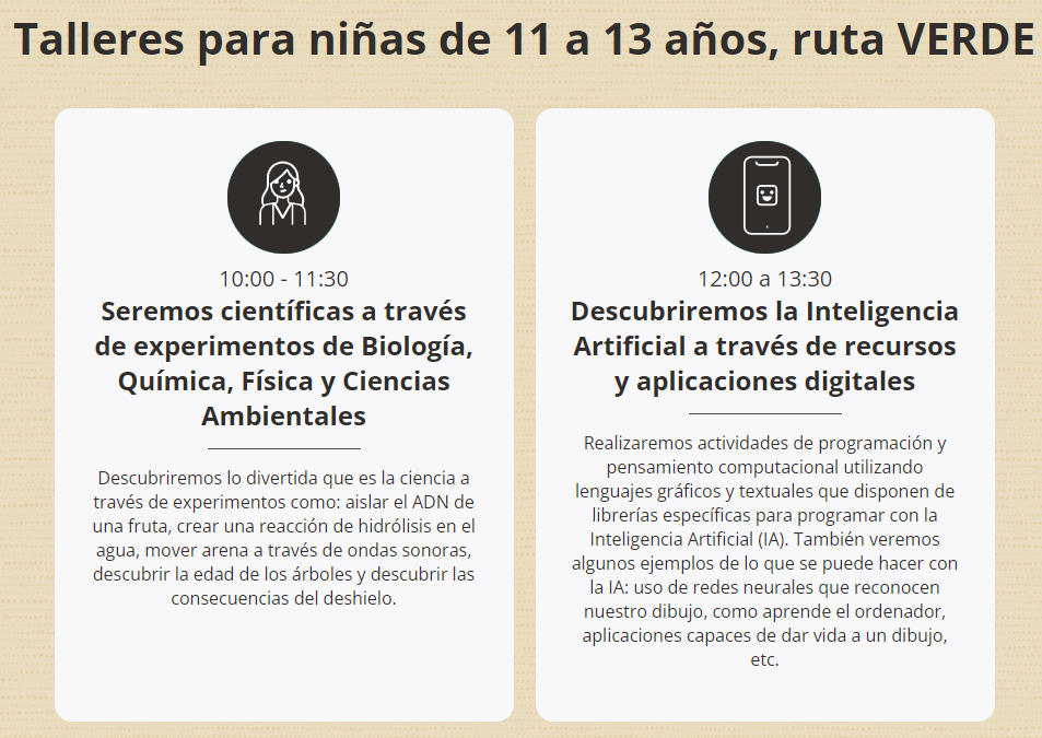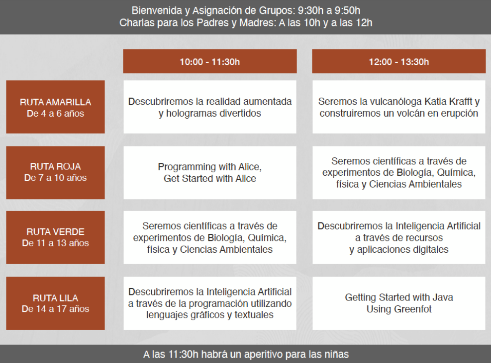 Hi ha 4 rutes en funció de l'edat de les nenes: de 4 a 6 anys, de 7 a 10 anys, d'11 a 13 anys i de 14 a 17 anys, i també hi haurà xerrades formatives per a les persones que en són tutores.