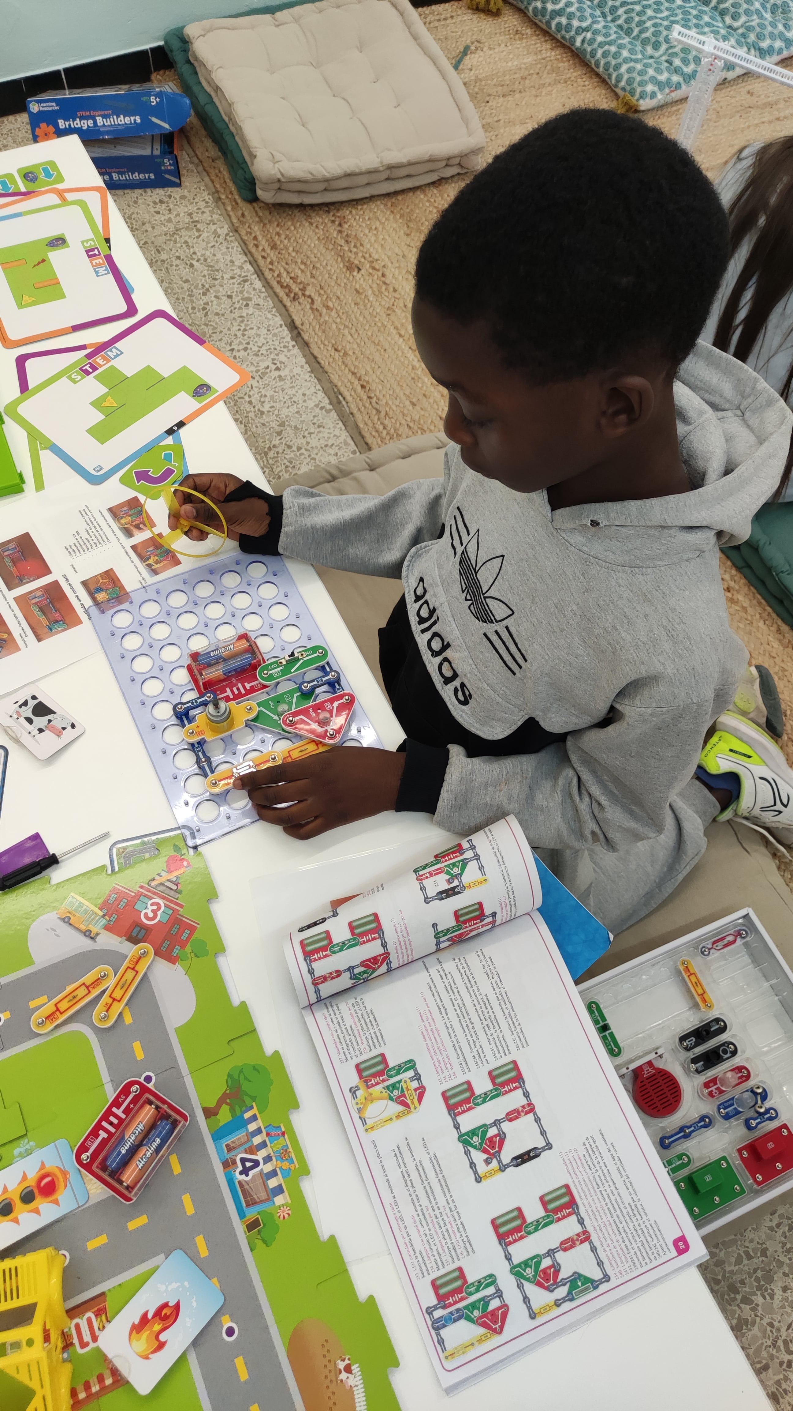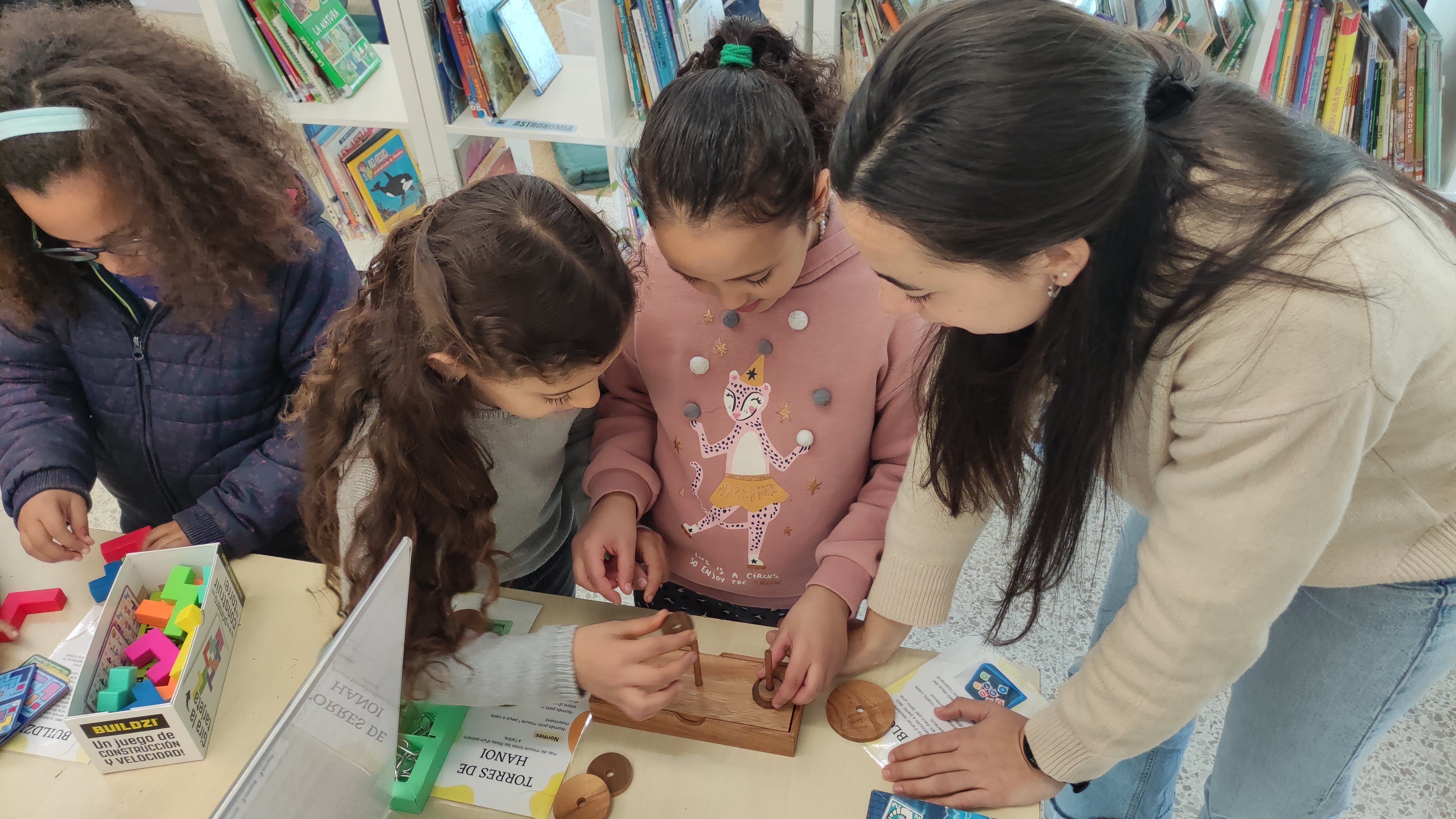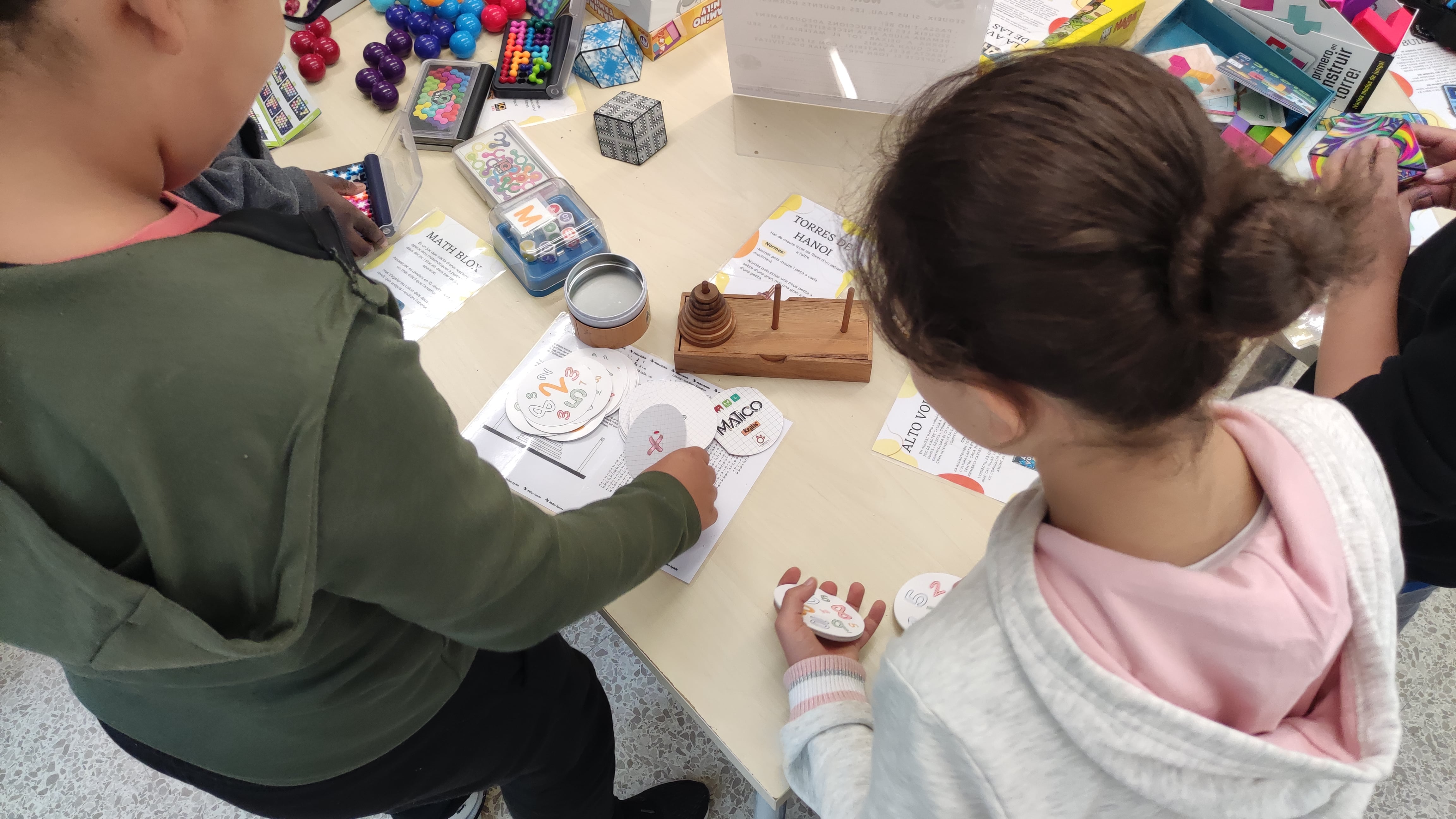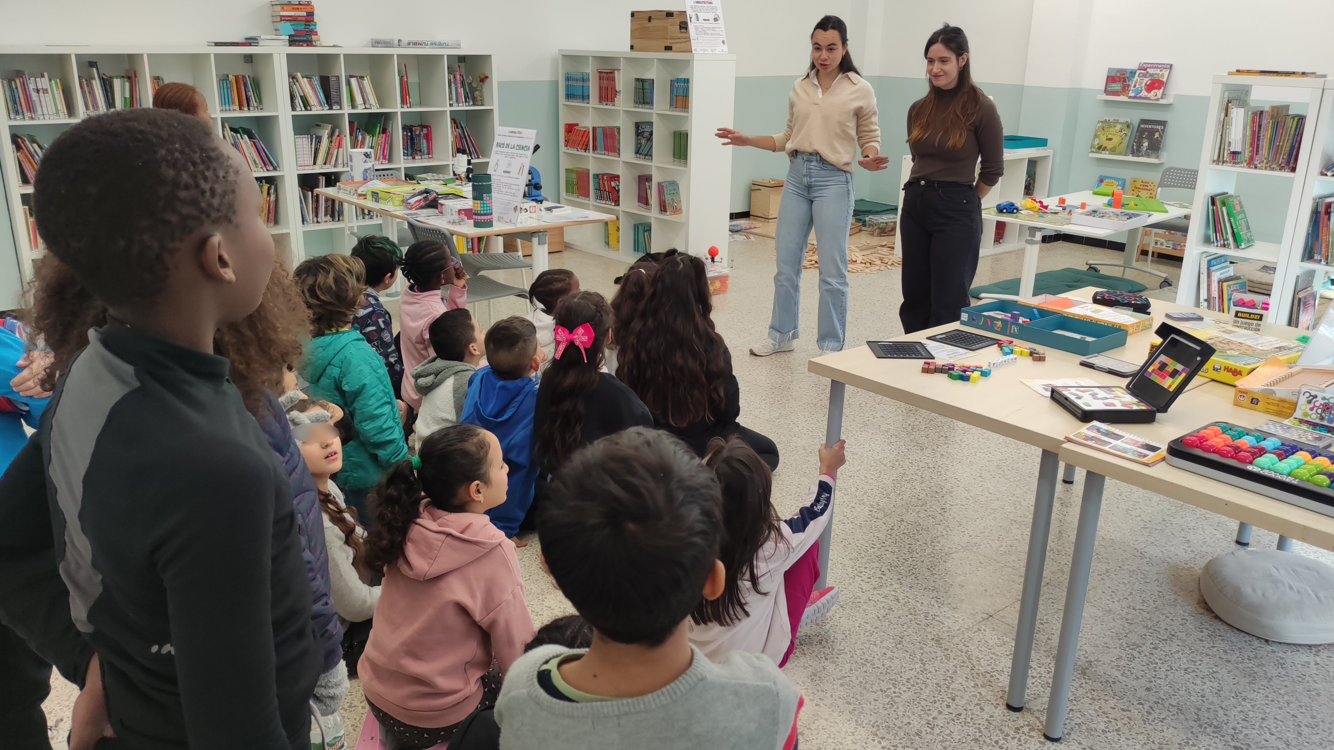 L'activitat es va portar a terme en l'espai de la biblioteca on, per racons, van poder jugar a molts jocs diferents per aprendre molts coses de les STEAM d'una manera divertida.