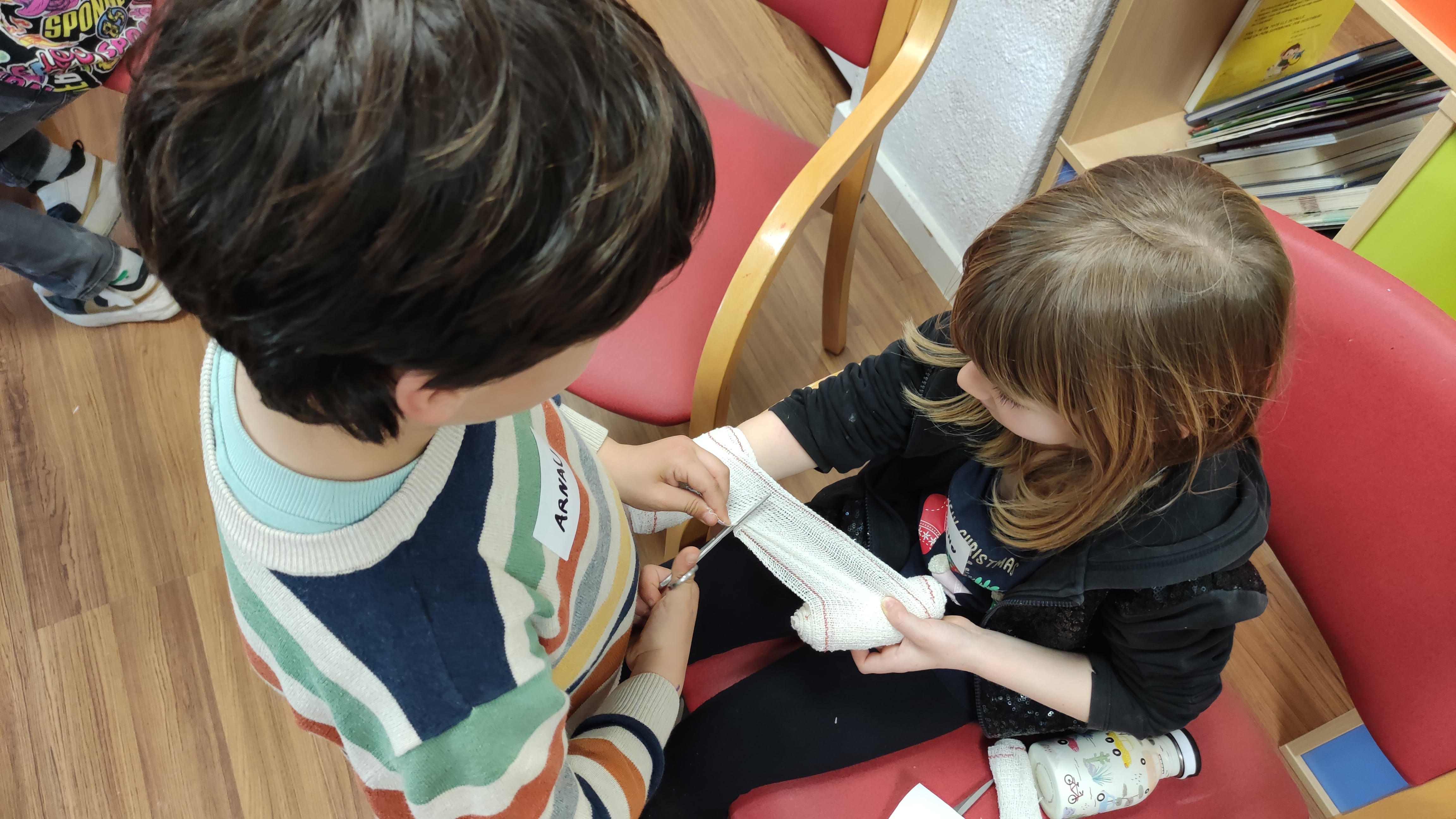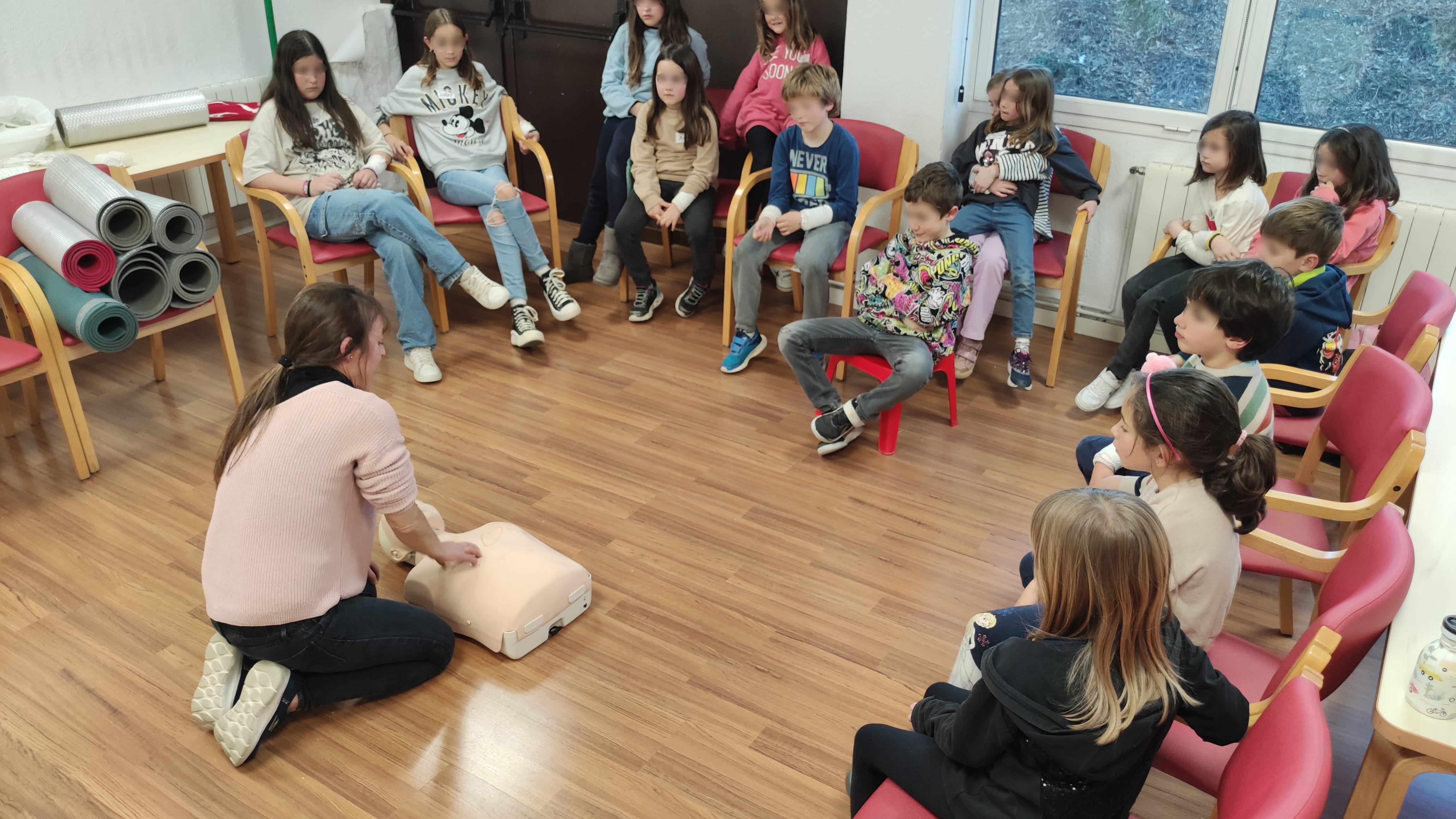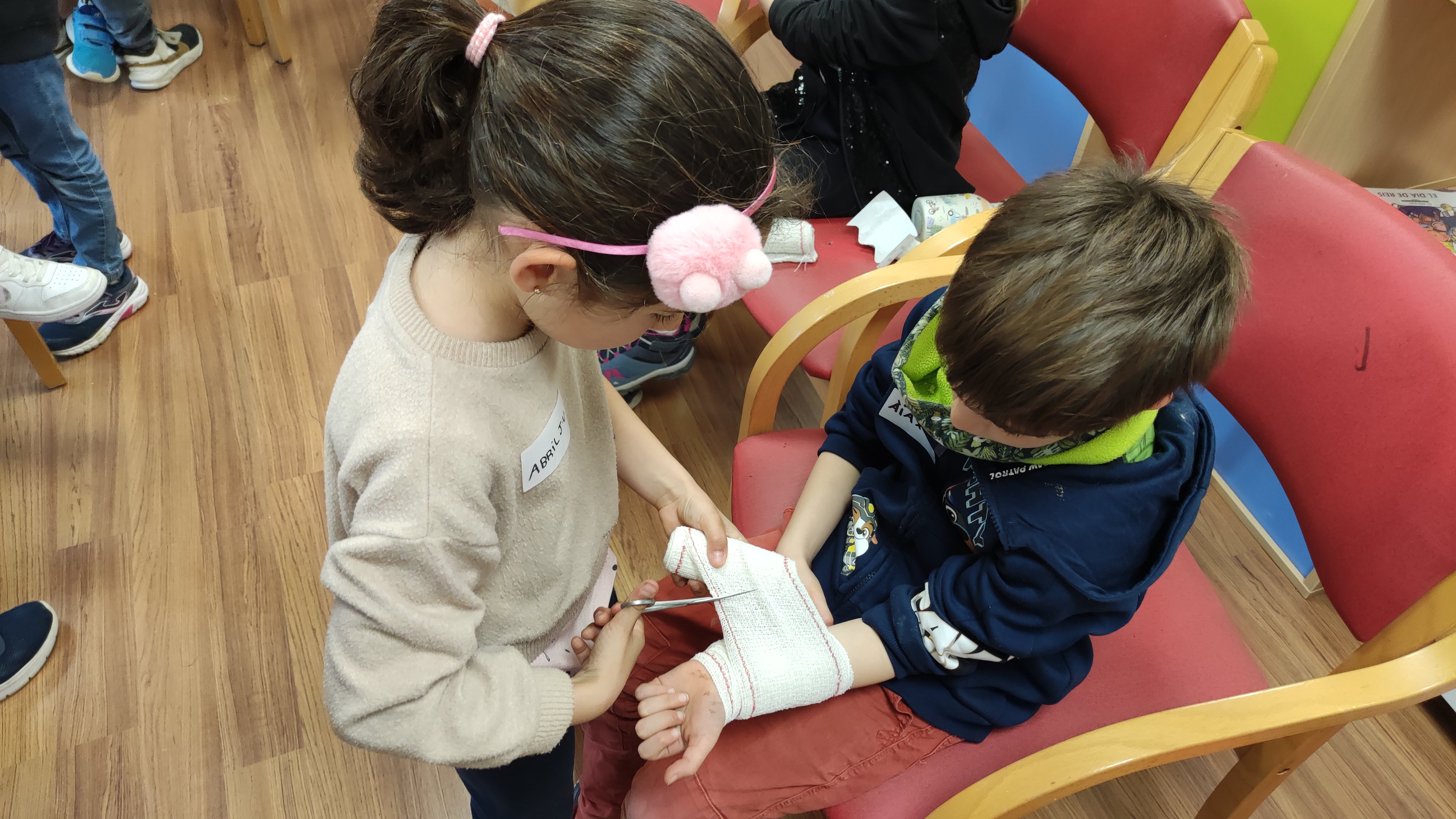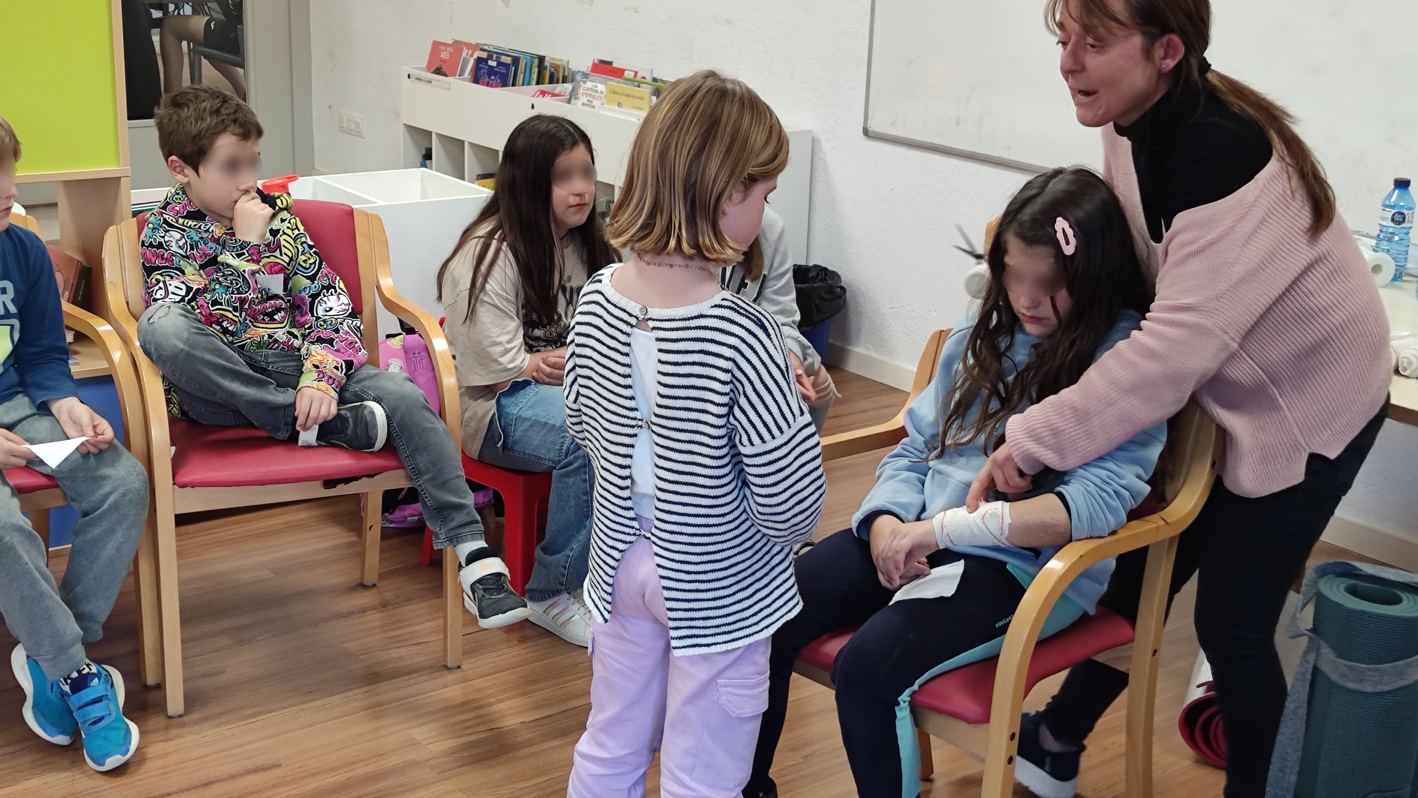 Els nens i nenes van practicar com curar una ferida, què fer si aquesta té molta sang, com hem de parar una hemorràgia del nas, què és el pols i com localitzar-lo, a qui hem de trucar davant d'una emergència, etc.
